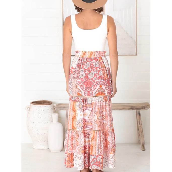 Boho high-waisted print half skirt